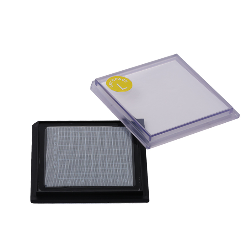對小且薄的產物(厚度小于1mm),用慣例的自吸附盒裝取,易呈現夾取堅苦的題目。而真空盒頂用于吸住產物的是一層很薄的,具備彈性的膠層。在一般的寄存時,產物外表與膠層打仗被最大化,產物被緊緊地牢固在運輸、處置和存儲的地位。當要取用時,經由進程在托盤底部的一個孔中施加真空,使膠膜與基層的絲網目數的外形符合,從而使產物與膠膜外表打仗最小化。這削減了膠和產物之間的吸附力(更少的打仗點),輕松地移除產物。